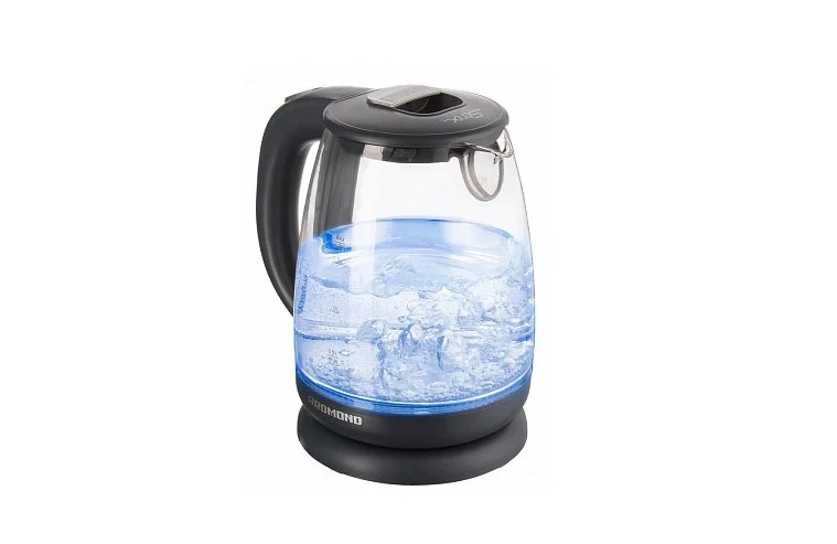 Если очень хочется стеклянный электрический чайник с подсветкой, рассмотрите недорогой вариант от компании REDMOND. Стильный стеклянный чайник от популярного производителя кухонной техники сочетает в себе изысканность и функциональность. Кроме подсветки чайник имеет вполне стандартные, но неплохие характеристики — высокая мощность 2200 Вт и объем 1.7 литра. В чайнике есть функция автоотключения при закипании, а так же защита от включения при отсутствии воды, что исключит поломку нагревательного элемента. О закипании воды предупредит звуковой сигнал. От вредных примесей защитит специальная сетка, размещенная на носике. Пользователи довольны всем — внешним видом, приятной подсветкой, быстрым закипанием воды, тихой работой, вместительностью, доступной ценой.