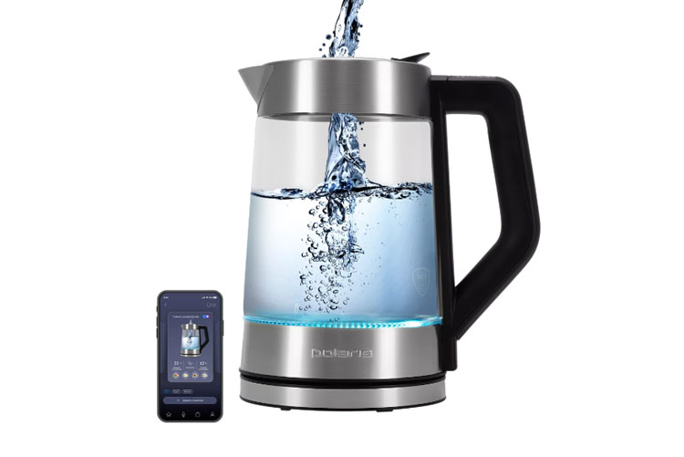 Но больше всего прельщает в этой модели — возможность включения чайника, не вставая с дивана. Это станет возможным после установки специального приложения на смартфон. В отличие от других аналогичных моделей, здесь программа проработана до мельчайших деталей. Со смартфона можно включать чайник, с точностью до градуса регулировать температуру нагрева, активировать опцию поддержания тепла. Яркая внутренняя подсветка стеклянного чайника меняется в зависимости от температуры. В вечернее время чайник может работать в режиме светильника.